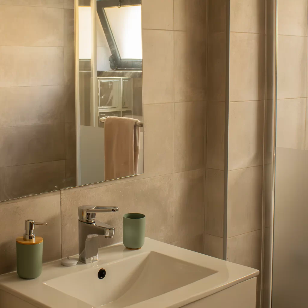 Aqui, encontrará tudo o que precisa para desfrutar de uma experiência de banho relaxante e revigorante durante a sua estadia. O WC está equipado com um chuveiro, onde poderá desfrutar de um banho revigorante após um dia de aventuras.. As toalhas macias e frescas estão prontas para serem utilizadas, proporcionando uma sensação de conforto. Com uma iluminação suave, a casa de banho é um espaço tranquilo.