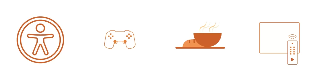 Televisão com canais por cabo, serviços de streaming e consola de jogos.